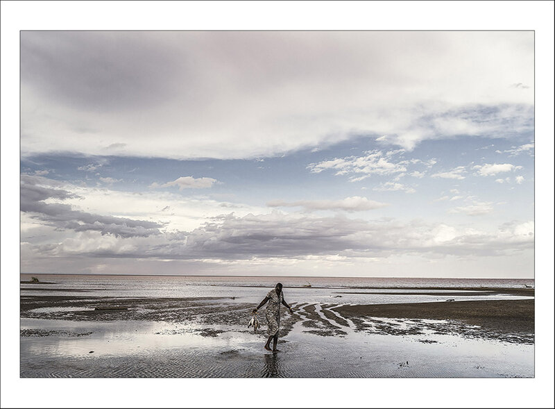 A woman ethnicity of Turkana, has just washed the fish bought from fishermen returning from a fishing trip. The Turkana is a deserted lake with a closed basin and is heavily subject to evaporation. Reducing the flow of water from the Omo and then from the lake increases salinity, thus endangering the fish.