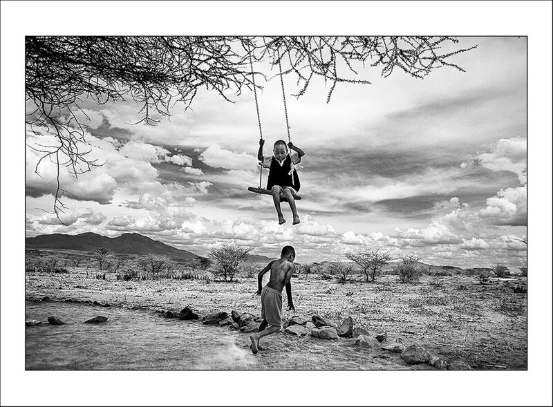 In that apparent nothing made of endless expanses and earth and dust a tree. An immense tree to define the square of that "nothing". A little shadow, two cords hanging from a branch and a table: children of the Samburu ethnic group who play on the swing and as if by magic, in that apparent "nothing" a small living world.